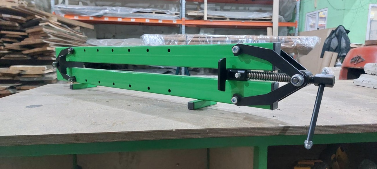 Жесткая конструкция за счет толстых стенок профиля, паралельные фрезерованные плоскости губок, быстрая перестановка заднего упора для нужного размера, трапецивидная резьба обеспечивает нужное давление на заготовку, сдавливание происходит с 4ех сторон исключая появления ступенек, полимерное антикорразионное покрытие - все эти качества делают этот инструмент идеальным для применения в столярном производстве.