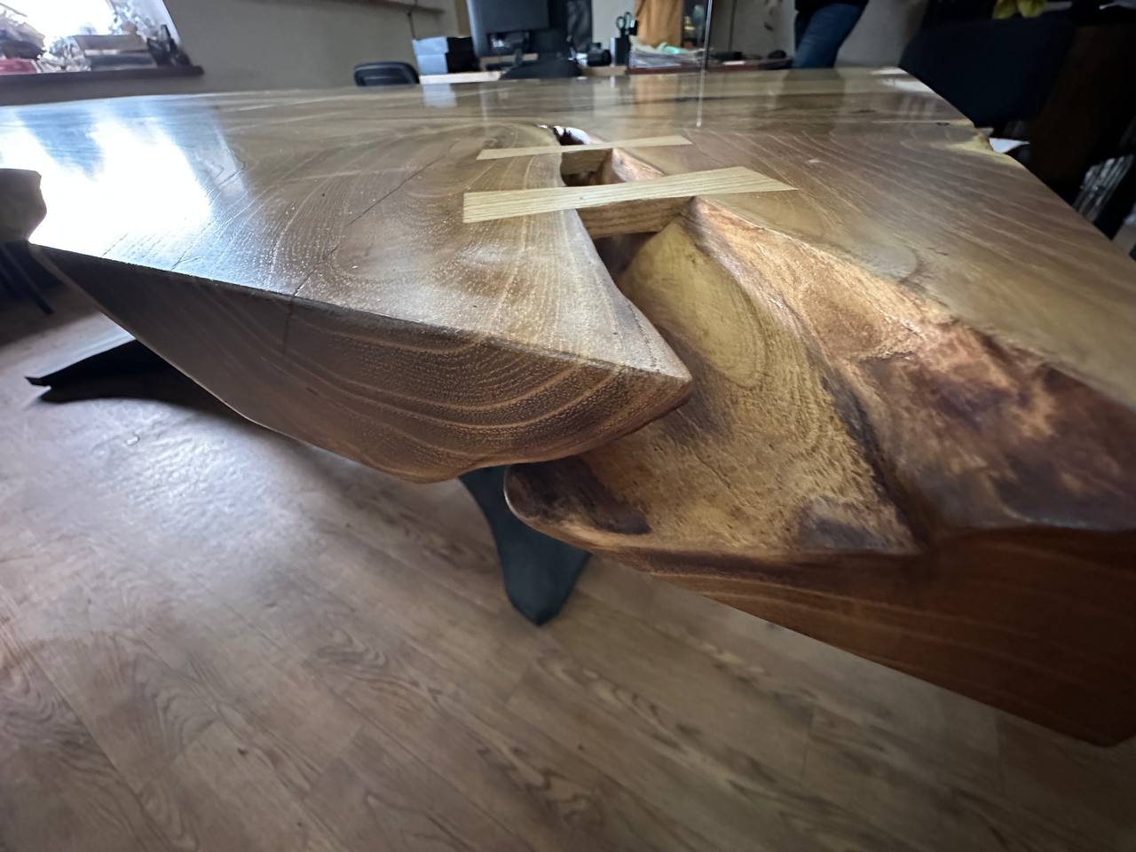 Мы можем изготовить для вас большой стол из ценных пород древесины, который будет дорого и эстетично выглядеть как дома, так и в кабинете для переговоров. Вы оцените его эстетичекий вид и долговечность. Естественные трещины заливаются эпоксидной смолой, либо соединяется эксклюзивным украшением "бабочка". Живые края дерева подчеркивают его геометрию и тактильно приятны. Каждый стол уникален благодаря натуальным текстурам и оттенкам дерева. Такой стол отлично впишется в ваш интерьер. Благодаря большому опыту работы вы получите высококачественное изделие с учетом всех нюансов работы с деревом.